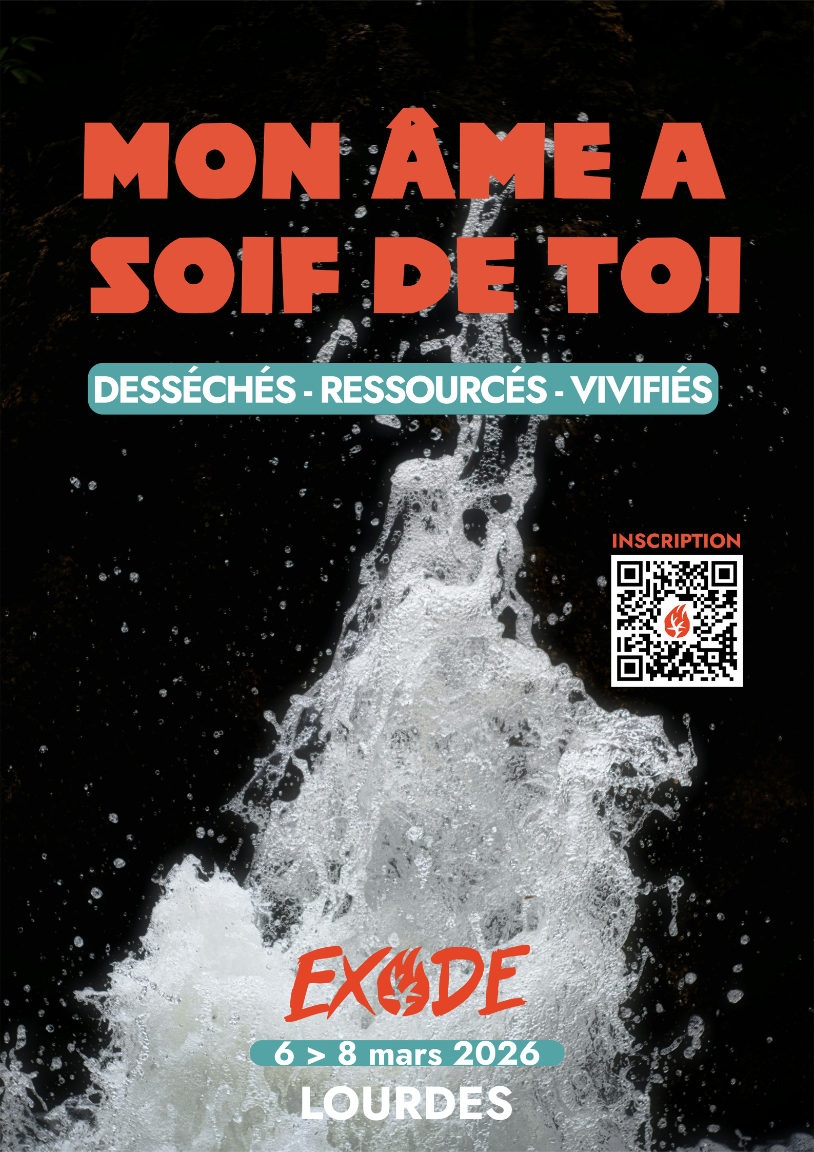 Exode veut faire expérimenter ce chemin intérieur : prise de conscience, être ressourcé, être vivifié de la grâce de Dieu. La Session 2026 mettra particulièrement l’accent sur l’expérience du Ressourcement : « Mon âme a soif de Toi ». Nous croyons que le Seigneur entend le cri de la jeunesse désemparée, en quête de repère, d’absolu, d’héroïsme, de guérison, de radicalité. Chaque personne peut venir se ressourcer à la source de toute chose et faire l’expérience de la puissance de la grâce qui relève.